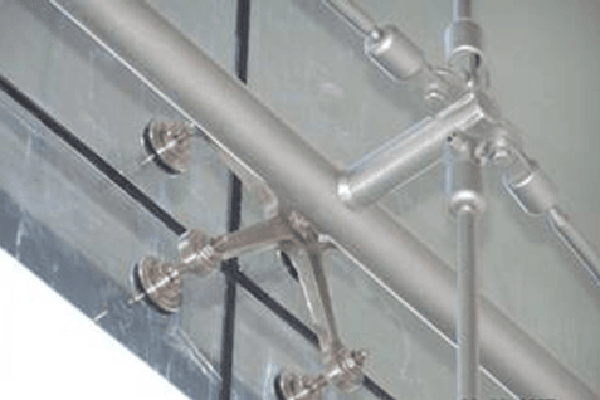 Cam, paslanmaz çelik veya epoksi boyalı demir taşıyıcı konstrüksiyon üzerine paslanmaz 4’lü, 3’lü, 2’li, 1’li çelik bağlantı elemanları (spider) ve paslanmaz rotiller ile monte ediliyor. Tutamaklar camın üzerine gelen stresi alıp çelik konstrüksiyona iletebilmek için hareket edebilen başlıklı olarak imal ediliyor.